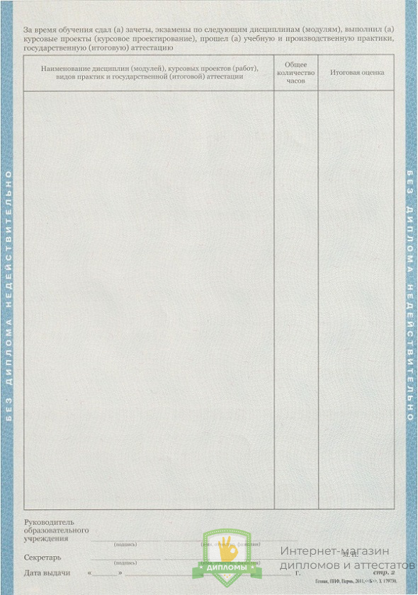 Прибрести диплом колледжа 2011 - 2013 год вы можете в компании «ОК-Дипломы». Работаем на профильном рынке более 20 лет, предлагая клиентам высококачественный сервис и разумные цены. У нас диплом колледжа 2011 - 2013 год выполняется на оригинальном бланке Гознак, дополняется подлинными подписями и печатями.