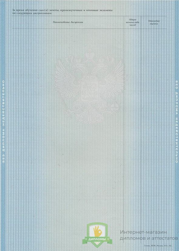 Изготовленный документ в компании «ОК-Дипломы» оформлен согласно действующим в Российской Федерации законам, соответствует нормам и особенностями, присущим тому или иному учебному заведению, имеет все элементы защиты.