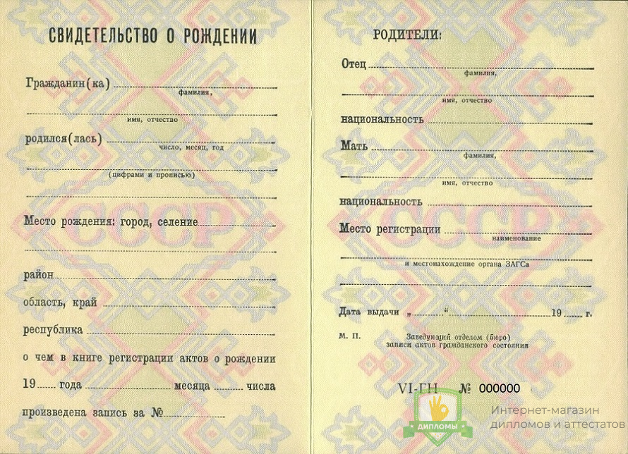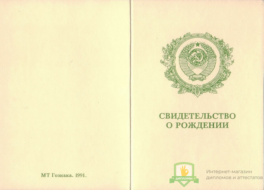 Прибрести свидетельство о рождении 1990 - 1997 год вы можете в компании «ОК-Дипломы». Работаем на профильном рынке более 20 лет, предлагая клиентам высококачественный сервис и разумные цены. У нас свидетельство о рождении 1990 - 1997 год выполняется на оригинальном бланке Гознак, дополняется подлинными подписями и печатями.