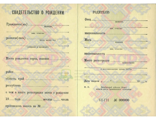 Купить свидетельство о рождении 1990 - 1997 год