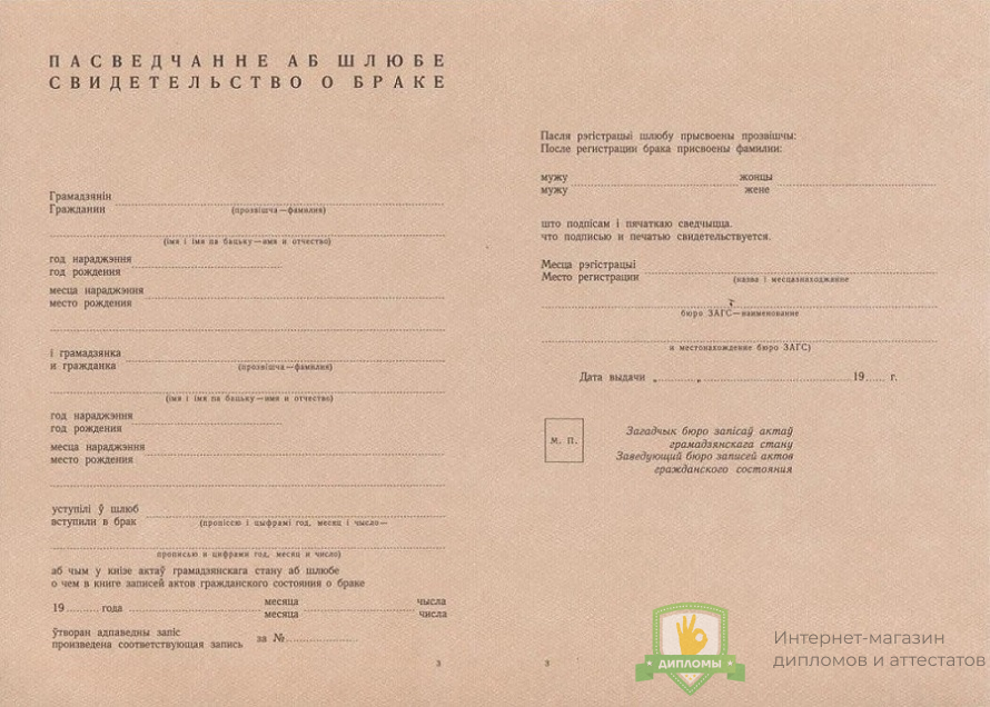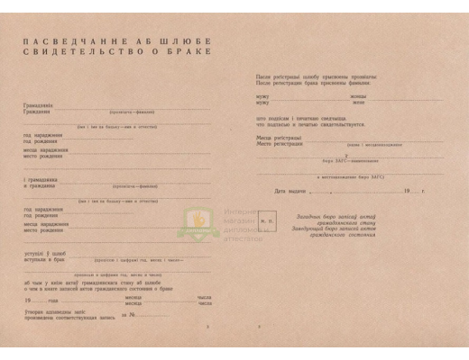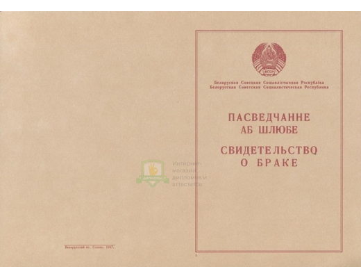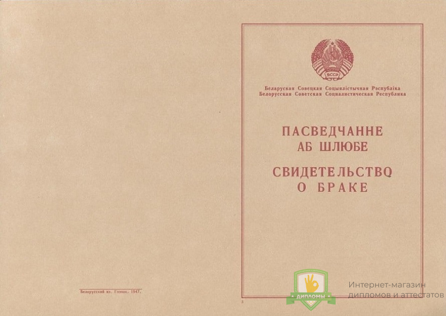 Если вы планируете купить свидетельство о заключении брака Белоруссии 1940 - 1949 год, не сомневайтесь – получаете подлинный документ, который заполняют профессионалы, имеющие многолетний опыт работы в сфере образования. Документ на 100% соответствует всем требованиями Министерства науки Российской Федерации.